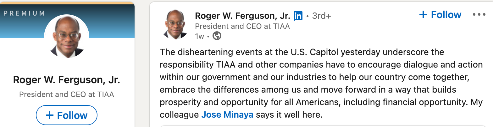 Or share a statement made by a business group. The Business Roundtable tweet was shared by quite a few CEOs.